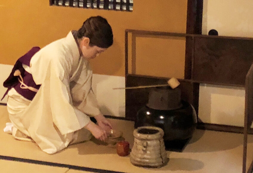御茶室での御茶会はソーシャルディスタンスを守り行なっており、また窓も複数ある御部屋でございます。