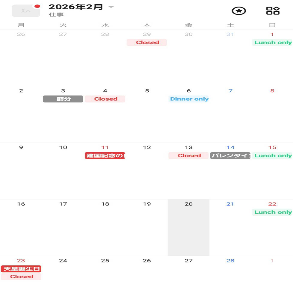 営業・臨時休業日・茶事スケジュール